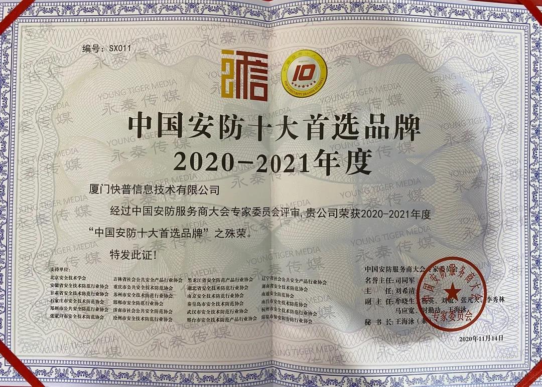 此次峰會,快普以先進的產(chǎn)品理念和優(yōu)秀的市場服務(wù)獲得業(yè)界的一致好評,并榮獲“中國安防十大品牌”,感恩安防行業(yè)客戶的支持,快普將堅定使命,持續(xù)為新基建企業(yè)提供強有力的信息化管理支持。