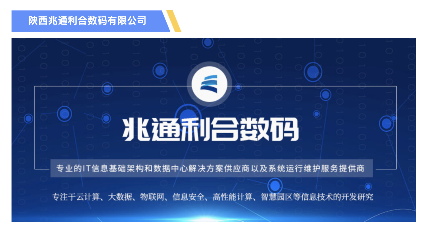 陜西兆通利合數(shù)碼有限公司成立于2001年,是一家集智慧城市、電子智能化、城市裝飾裝修、IT信息數(shù)據(jù)及云計算、大數(shù)據(jù)、互聯(lián)網(wǎng)、物聯(lián)網(wǎng)等工程設(shè)計實施為一體的綜合性科技企業(yè),業(yè)務(wù)領(lǐng)域涵蓋架構(gòu)咨詢、產(chǎn)品交付、系統(tǒng)集成以及系統(tǒng)運維服務(wù)。