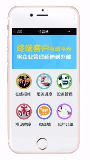 快普的服務(wù)通:為辦公設(shè)備行業(yè)企業(yè)建立網(wǎng)絡(luò)服務(wù)叫修平臺,將客戶和機(jī)器整合進(jìn)來,實(shí)現(xiàn)機(jī)器設(shè)備的在線監(jiān)控及遠(yuǎn)程抄表管理。