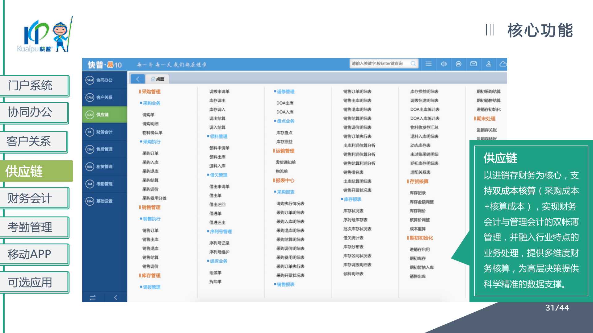 快普易10(商貿(mào)版)提供以客戶為中心的數(shù)字化管理解決方案,涵蓋客戶、銷售、庫存、資金、財(cái)務(wù)等業(yè)財(cái)一體化管理,全面優(yōu)化流程、提高企業(yè)效率,讓每一筆生意明明白白!