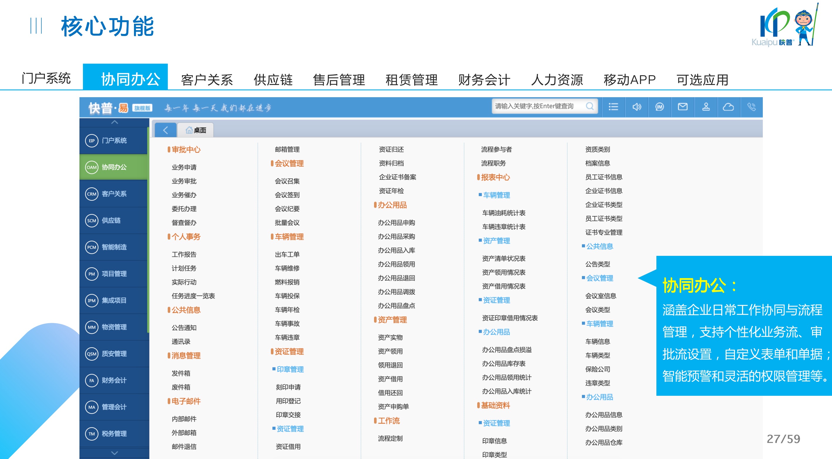 快普易30基于快普近20年在全國上萬家OA企業(yè)的實(shí)施與服務(wù)經(jīng)驗(yàn),融合了行業(yè)成功的管理智慧,以“客戶+機(jī)器”為中心提供數(shù)字化轉(zhuǎn)型解決方案,全面解決銷售、服務(wù)、租賃等多種業(yè)務(wù)模式的管理需求,以及企業(yè)經(jīng)營核算分析。
