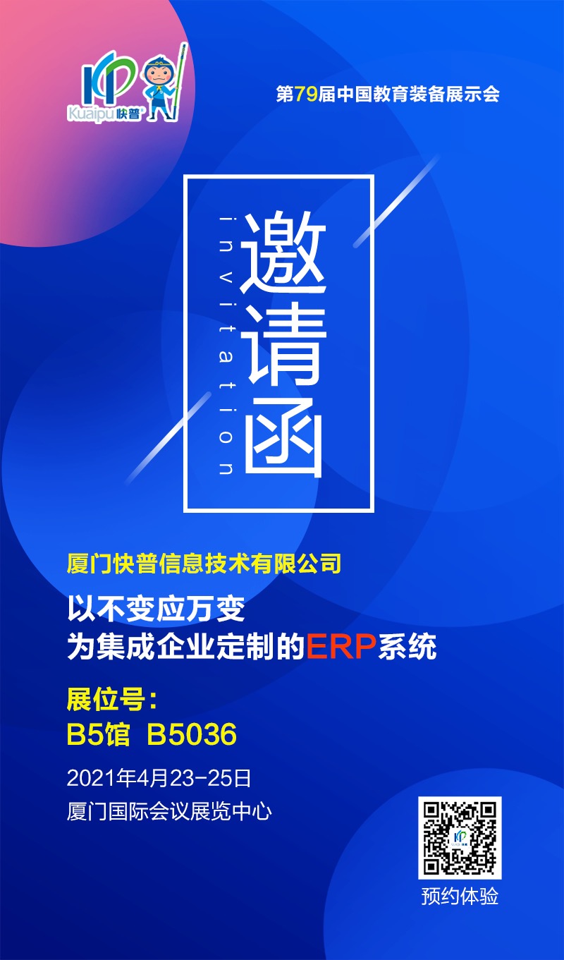 作為福建本土知名軟件廠商,快普致力于集成企業(yè)信息化服務(wù)已有十余年,成為許多集成企業(yè)的軟件系統(tǒng)供應(yīng)商,并連續(xù)多年被邀約參與中國(guó)教育裝備展示會(huì)。